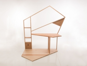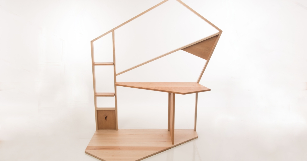 The generous donation allowed Koloski to make the largest piece of furniture in her college career. When the desk is unfolded, it stands at 6 feet tall and 5 feet by 2 feet in diameter.