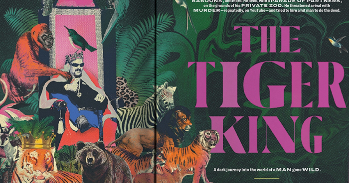 Upon seeing an Oklahoma news article about the arrest of Joe Exotic (whose real name is Joe Schreibvogel), Reigstad was instantly drawn to his story and eccentric mugshot. After his pitch to feature the story in Texas Monthly was enthusiastically approved by his editor, Reigstad was led down many “rabbit holes,” as he described the process, collecting and reporting facts about Joe Exotic’s life, visiting his closed private zoo, being among the reporters who attended his trial, and even speaking with the man himself from prison.