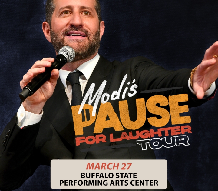 AEG presents Modi for a stop at the Buffalo State Performing Arts Center on Thursday, March 27 at 7:30 p.m., for a stop during his Pause for Laughter Tour. Voted one of the top 10 comedians in New York City by the Hollywood Reporter, Modi has been featured on HBO, CBS, NBC, ABC, Comedy Central, and more. At age seven, Modi emigrated with his family from Tel Aviv, Israel, to the United States and was raised on Long Island. His debut special, Know Your Audience, was released this past March. Modi has acting credits in several films, including lead roles in Stand Up, a feature-length film, and Waiting for Woody Allen, winner of the LA Film Festival. He has also appeared as himself in HBO’s Crashing and Netflix’s When Jews Were Funny. In 2018, then-mayor Bill de Blasio declared June 26 “Morchechi Modi Rosenfeld Day” in New York City, in recognition of Modi’s accomplishments and contributions to the artistic community.