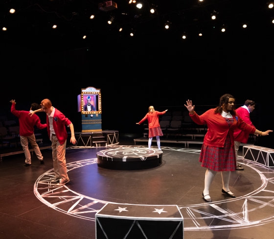 This month, Ride the Cyclone is presented in the round—i.e. with audience seated on all sides of the stage—by the Buffalo State Theater Department and Casting Hall Productions. It is the university’s first production in the newly renovated Flexible Theatre, located in the Donald Savage Theater and Communication Building.
