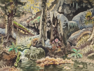 Burchfield scholar Nancy Weekly described the painting as “a quintessential work in a series that imaginatively depicts the joyful transition of seasons from winter to spring.” Retreat of Winter’s sister paintings, The Coming of Spring and Two Ravines can be found in the collections of the Metropolitan Museum of Art and the Hunter Museum of American Art, respectively.