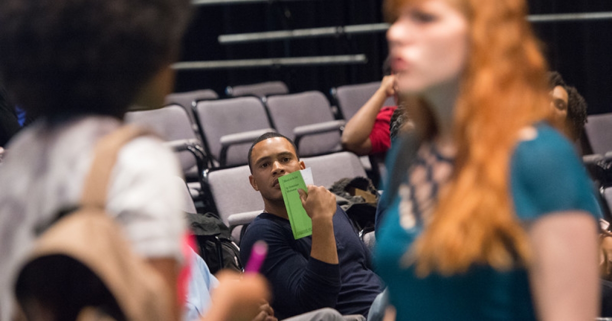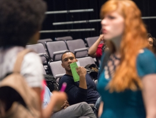 "Empire" actor Trai Byers directing a theater scene in a master class at Buffalo State College.