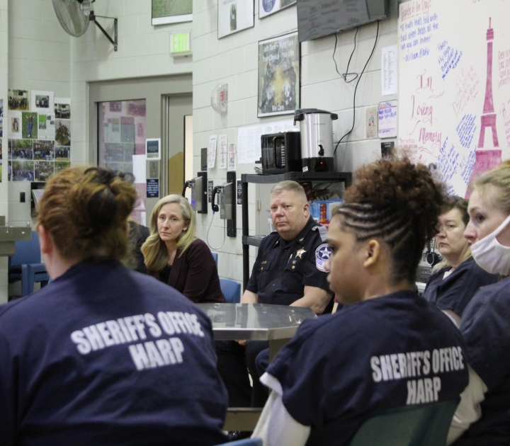 He identified four male and four female inmates in the program who showed leadership skills and tapped them to be “mentors” in the program. Because they’d already kicked the drug habit, he said, they were in the best position to understand those in the throes of addiction. His jail became the only one in the state to provide peer recovery specialist (PRS) training and to certify many of the mentors as peer recovery counselors. They facilitate daily activities for those in the jail’s Recovery House, including group assignments and Alcoholics Anonymous and Narcotics Anonymous 12-step meetings. Together, they work with HARP participants to get at the heart of what’s fueling their hunger for drugs.