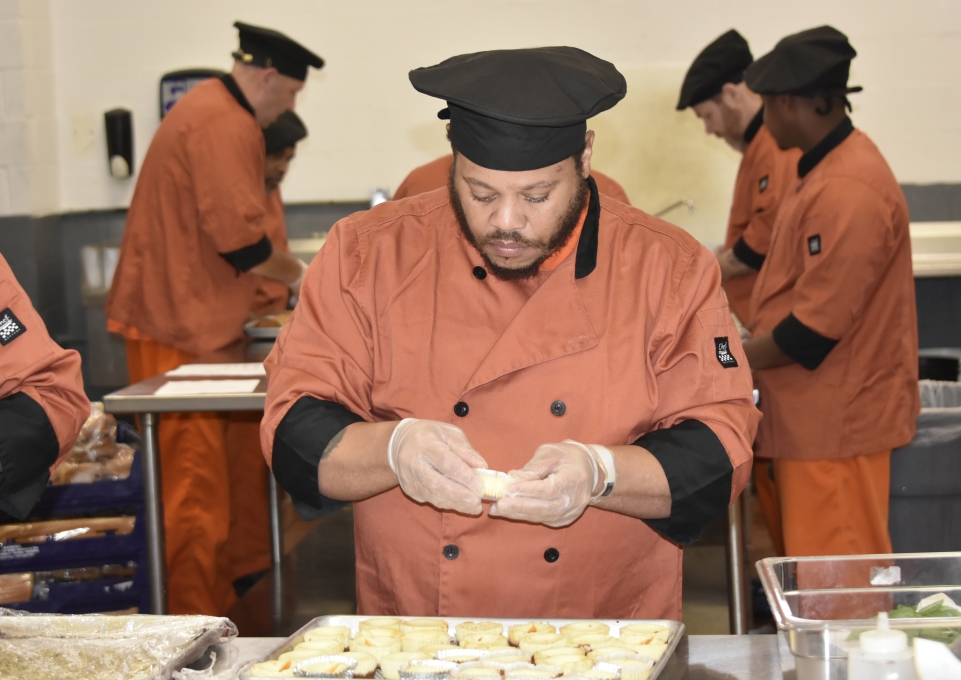 “I grew up on the East Side of Buffalo, tough neighborhood,” said Schmitter, who visits the Erie County Correctional Facility in Alden to provide culinary instruction. “I very well could have ended up here had it not been for some luck. So I looked at it that way: people deserve a second chance. I wasn’t so sure how the reception would be. I figured it might just be, ‘I want to get out of my pod and be able to do something, maybe I don’t have so much interest,’ but it has not been that at all. They have been extremely engaged, very interested, very motivated.”
