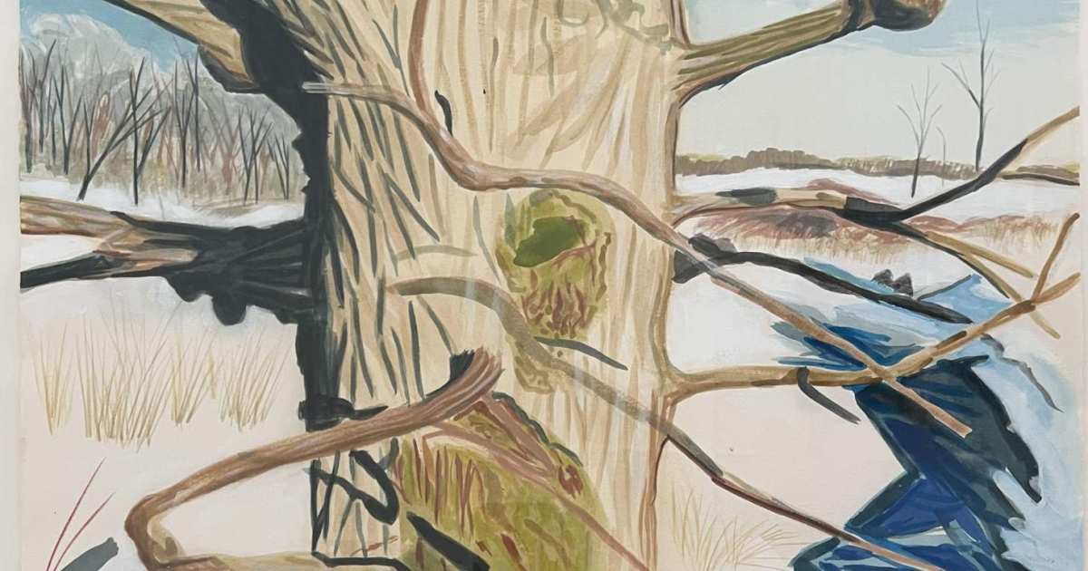 Jemison has two other crow paintings in the collection. In 1952, Burchfield created a lithography on paper featuring a crow in flight, titled Crows in March, which Weekly placed between two of Jemison’s crow paintings.